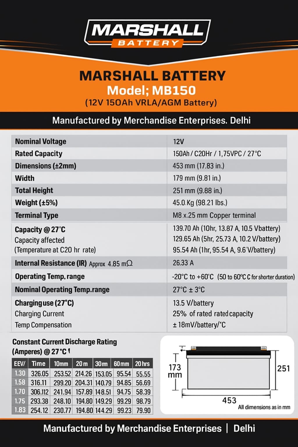 With over three decades of industry leadership, Merchandise Enterprises stands as one of India’s most respected battery manufacturers. Under the Marshall Battery brand, we design and manufacture a full range of Lead Acid Automobile Batteries, Traction Batteries, and SMF VRLA batteries—trusted by both public and private sector giants.